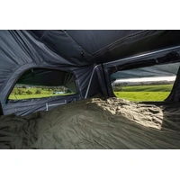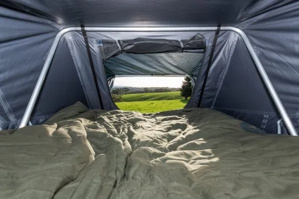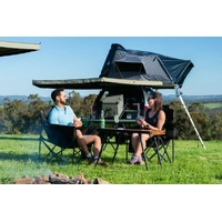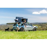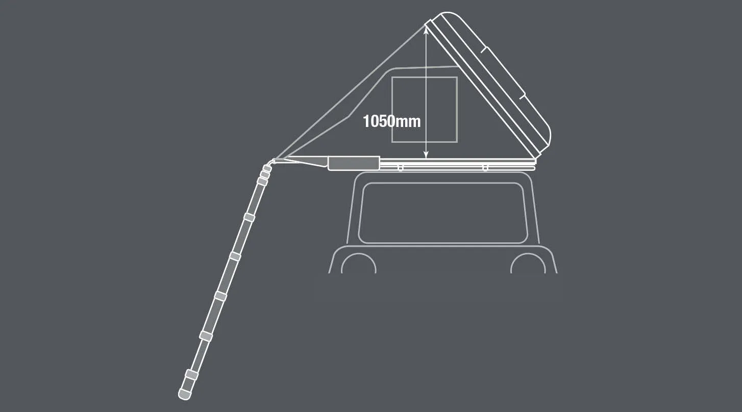 Setup is as simple as removing three nylon straps and pushing up the lightweight ABS cover which is assisted into position by two gas struts. The integrated collapsible aluminium ladder is then used to lever forward the extending floor, and torsion the tent frame and tent into its final position.