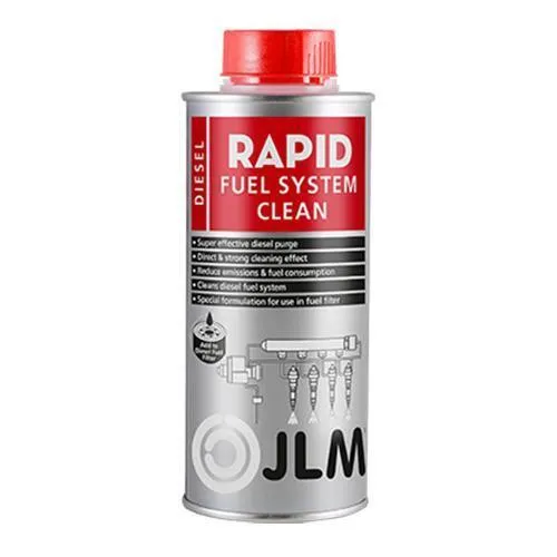 JLM Rapid Fuel System Clean J02330 is a highly concentrated diesel system cleaner, which enters the motor undiluted via the fuel filter and removes soot deposits in the fuel rail, from injectors, valves, pistons, and from the combustion chamber.