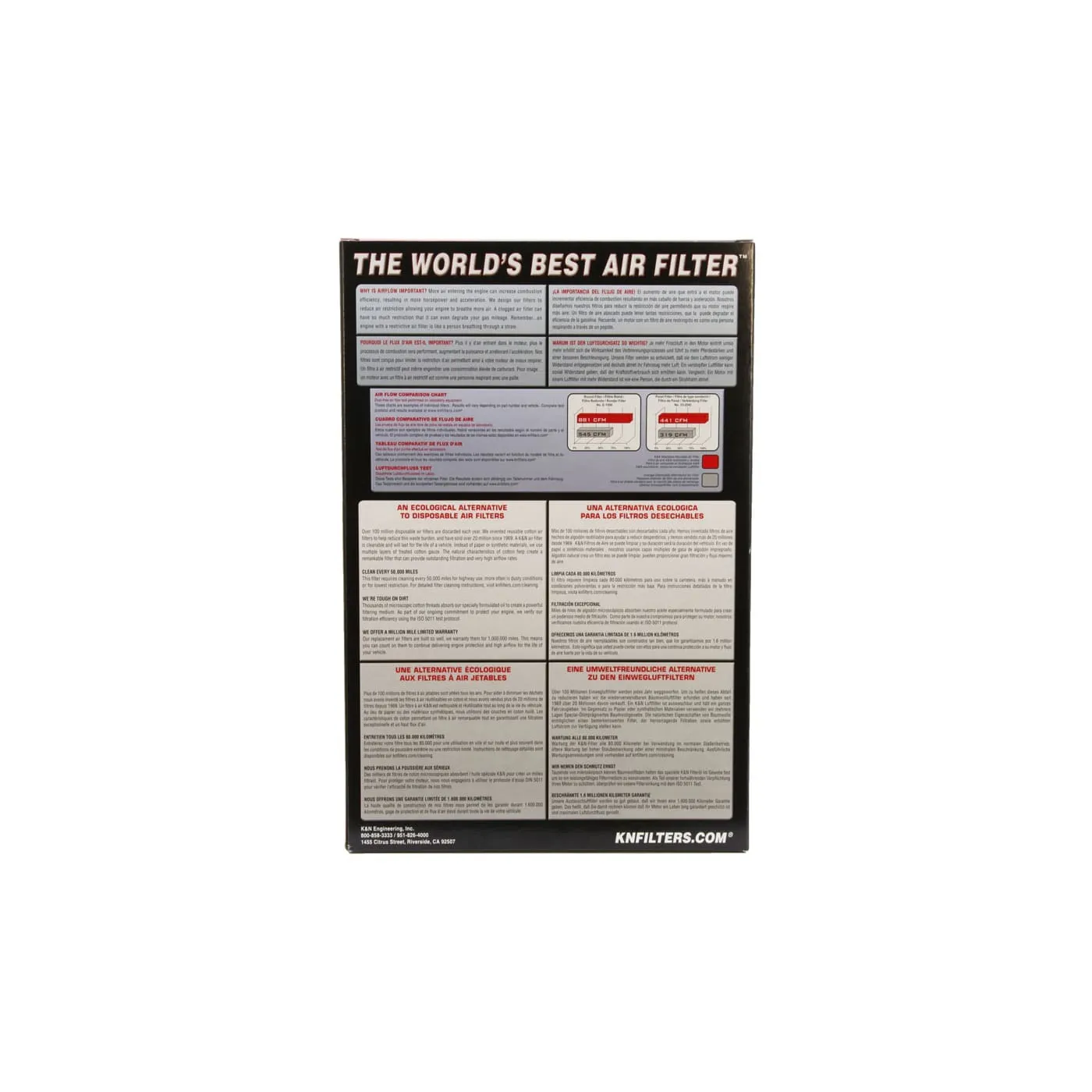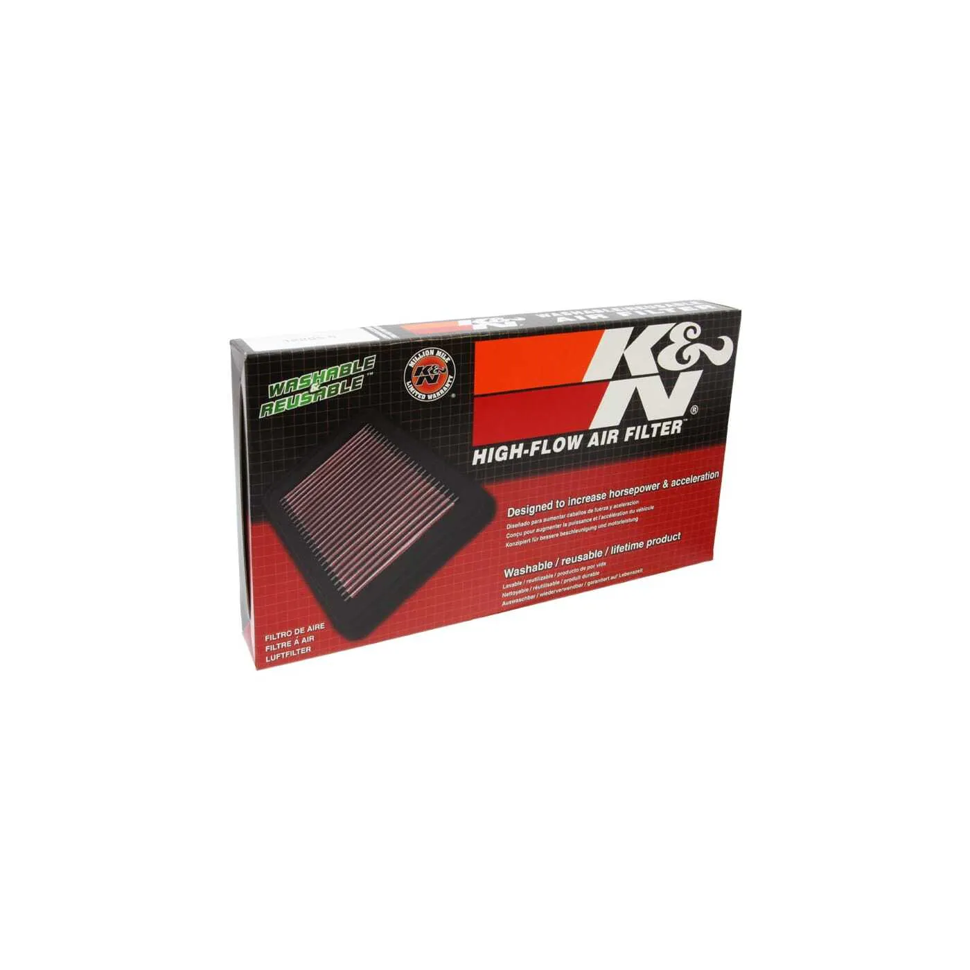 K&N® washable, reusable High-Flow Air Filters™ feature a state-of-the-art design of layered, oiled cotton media engineered to improve airflow and capture contaminants, and are designed to provide an increase in horsepower. Each performance air filter is reusable, engineered to last for the entire lifespan of your vehicle, and backed by K&N’s 10-Year/Million Mile Limited Warranty. K&N drop-in replacement filters are designed to install easily into your factory air box. Upgrade today and start enjoying superior airflow and superior performance from K&N’s most popular product!