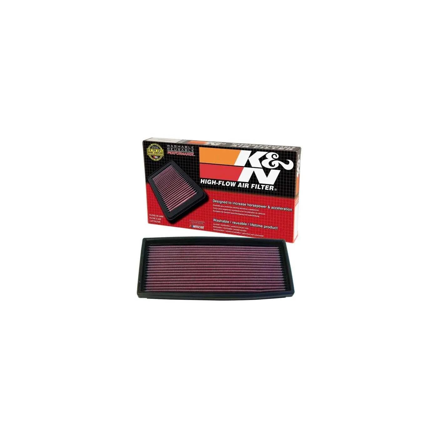 K&N® washable, reusable High-Flow Air Filters™ feature a state-of-the-art design of layered, oiled cotton media engineered to improve airflow and capture contaminants, and are designed to provide an increase in horsepower. Each performance air filter is reusable, engineered to last for the entire lifespan of your vehicle, and backed by K&N’s 10-Year/Million Mile Limited Warranty. K&N drop-in replacement filters are designed to install easily into your factory air box. Upgrade today and start enjoying superior airflow and superior performance from K&N’s most popular product!