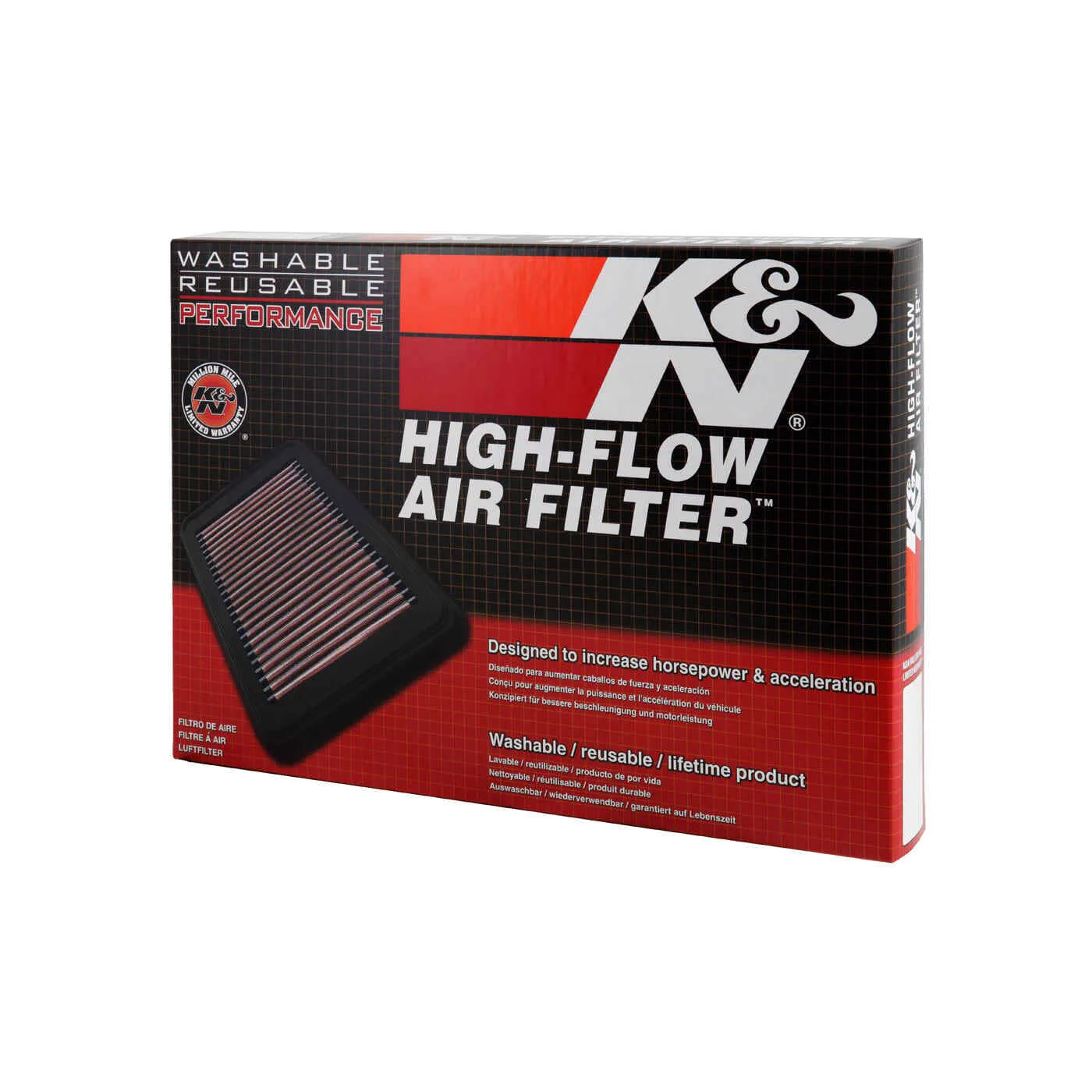 K&N® washable, reusable High-Flow Air Filters™ feature a state-of-the-art design of layered, oiled cotton media engineered to improve airflow and capture contaminants, and are designed to provide an increase in horsepower. Each performance air filter is reusable, engineered to last for the entire lifespan of your vehicle, and backed by K&N’s 10-Year/Million Mile Limited Warranty. K&N drop-in replacement filters are designed to install easily into your factory air box. Upgrade today and start enjoying superior airflow and superior performance from K&N’s most popular product!