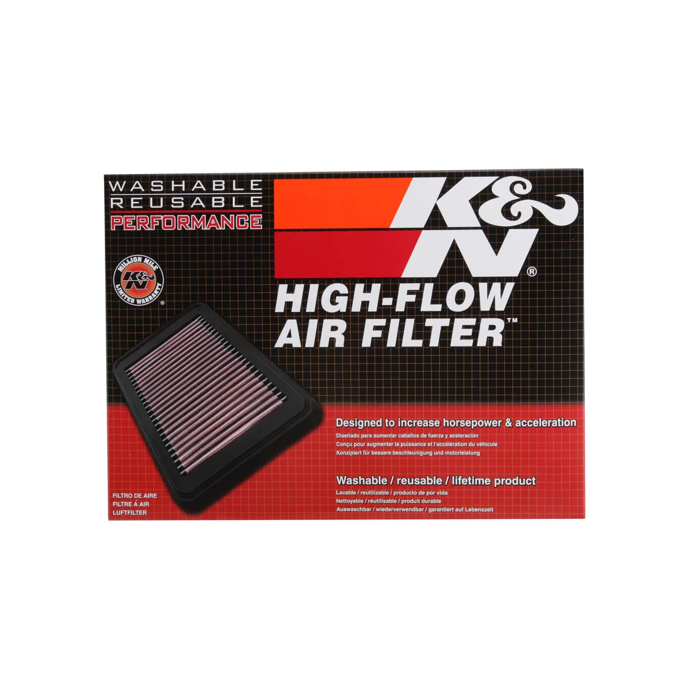 K&N® washable, reusable High-Flow Air Filters™ feature a state-of-the-art design of layered, oiled cotton media engineered to improve airflow and capture contaminants, and are designed to provide an increase in horsepower. Each performance air filter is reusable, engineered to last for the entire lifespan of your vehicle, and backed by K&N’s 10-Year/Million Mile Limited Warranty. K&N drop-in replacement filters are designed to install easily into your factory air box. Upgrade today and start enjoying superior airflow and superior performance from K&N’s most popular product!