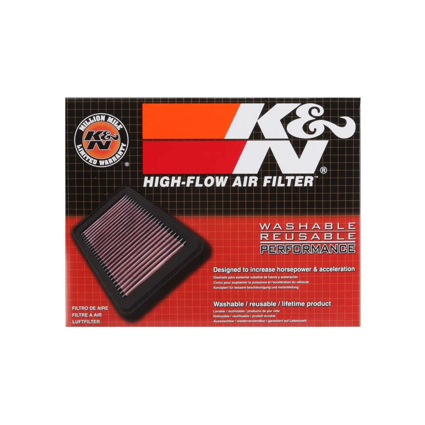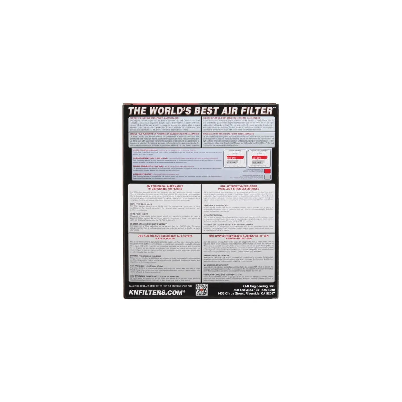 K&N® washable, reusable High-Flow Air Filters™ feature a state-of-the-art design of layered, oiled cotton media engineered to improve airflow and capture contaminants, and are designed to provide an increase in horsepower. Each performance air filter is reusable, engineered to last for the entire lifespan of your vehicle, and backed by K&N’s 10-Year/Million Mile Limited Warranty. K&N drop-in replacement filters are designed to install easily into your factory air box. Upgrade today and start enjoying superior airflow and superior performance from K&N’s most popular product!
