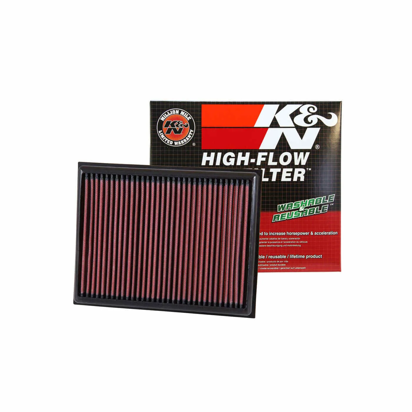 K&N® washable, reusable High-Flow Air Filters™ feature a state-of-the-art design of layered, oiled cotton media engineered to improve airflow and capture contaminants, and are designed to provide an increase in horsepower. Each performance air filter is reusable, engineered to last for the entire lifespan of your vehicle, and backed by K&N’s 10-Year/Million Mile Limited Warranty. K&N drop-in replacement filters are designed to install easily into your factory air box. Upgrade today and start enjoying superior airflow and superior performance from K&N’s most popular product!