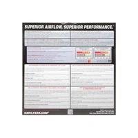 K&N® washable, reusable High-Flow Air Filters™ feature a state-of-the-art design of layered, oiled cotton media engineered to improve airflow and capture contaminants, and are designed to provide an increase in horsepower. Each performance air filter is reusable, engineered to last for the entire lifespan of your vehicle, and backed by K&N’s 10-Year/Million Mile Limited Warranty. K&N drop-in replacement filters are designed to install easily into your factory air box. Upgrade today and start enjoying superior airflow and superior performance from K&N’s most popular product!
