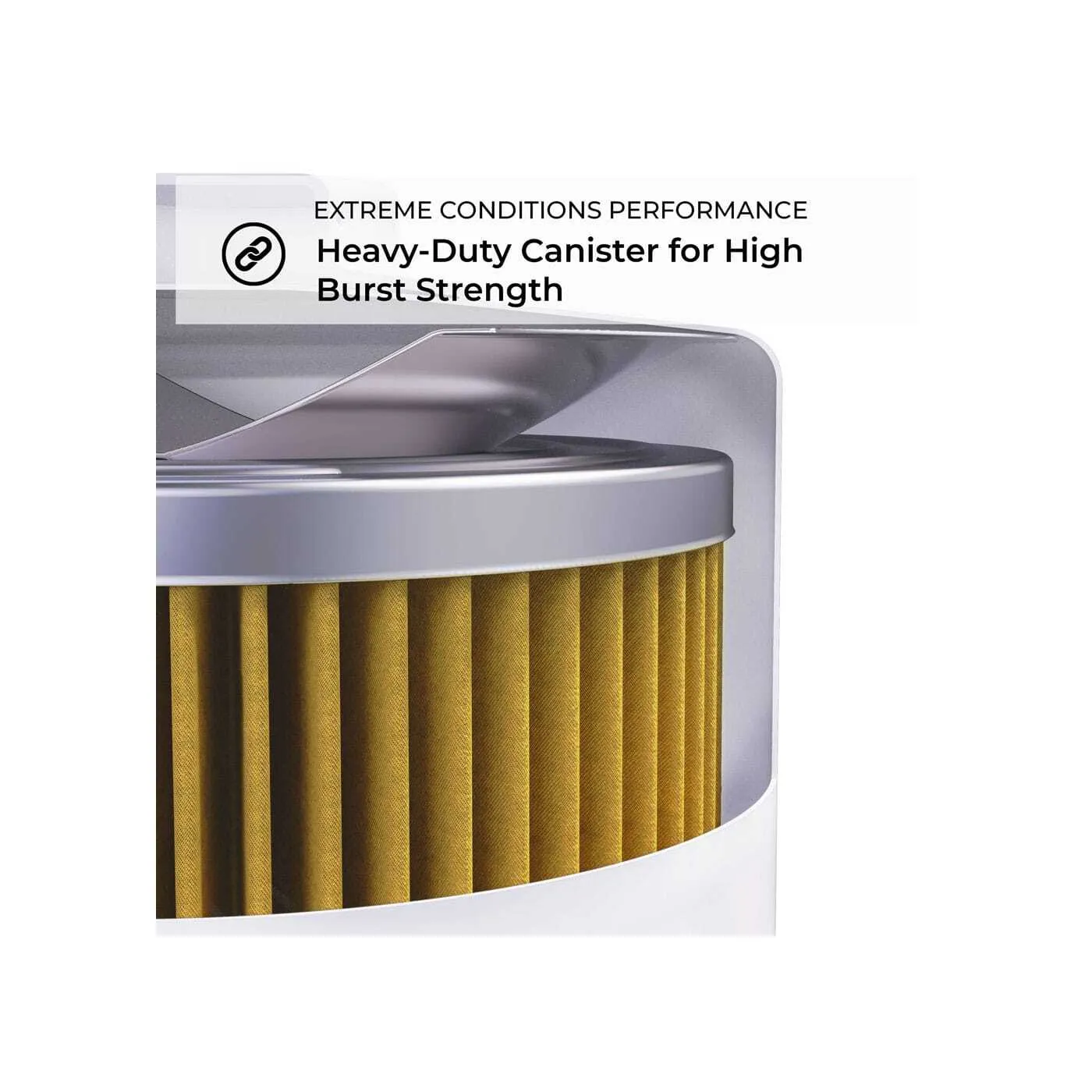 - Pleated synthetic-blend filtration media removes most harmful contaminants