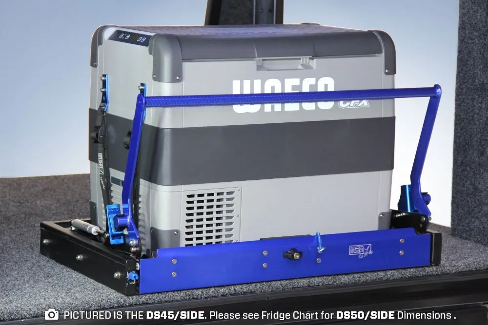 MSA 4X4's DS50SIDE Fridge Drop Slide is an innovative, patented design which allows you to safely lower your fridge, providing easy, convenient access to its contents.