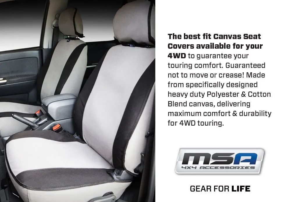 MSA 4X4 have created a canvas seat cover that is durable enough to withstand life’s adventures, but not too stiff that its uncomfortable for the occupants.
