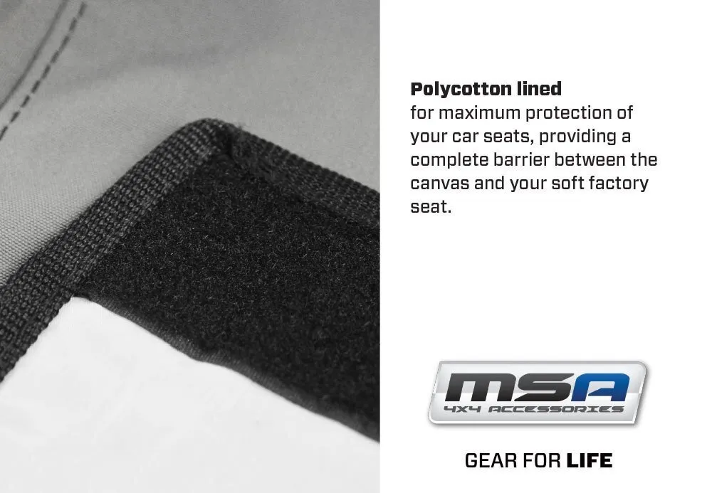 MSA 4X4 have created a canvas seat cover that is durable enough to withstand life’s adventures, but not too stiff that its uncomfortable for the occupants.