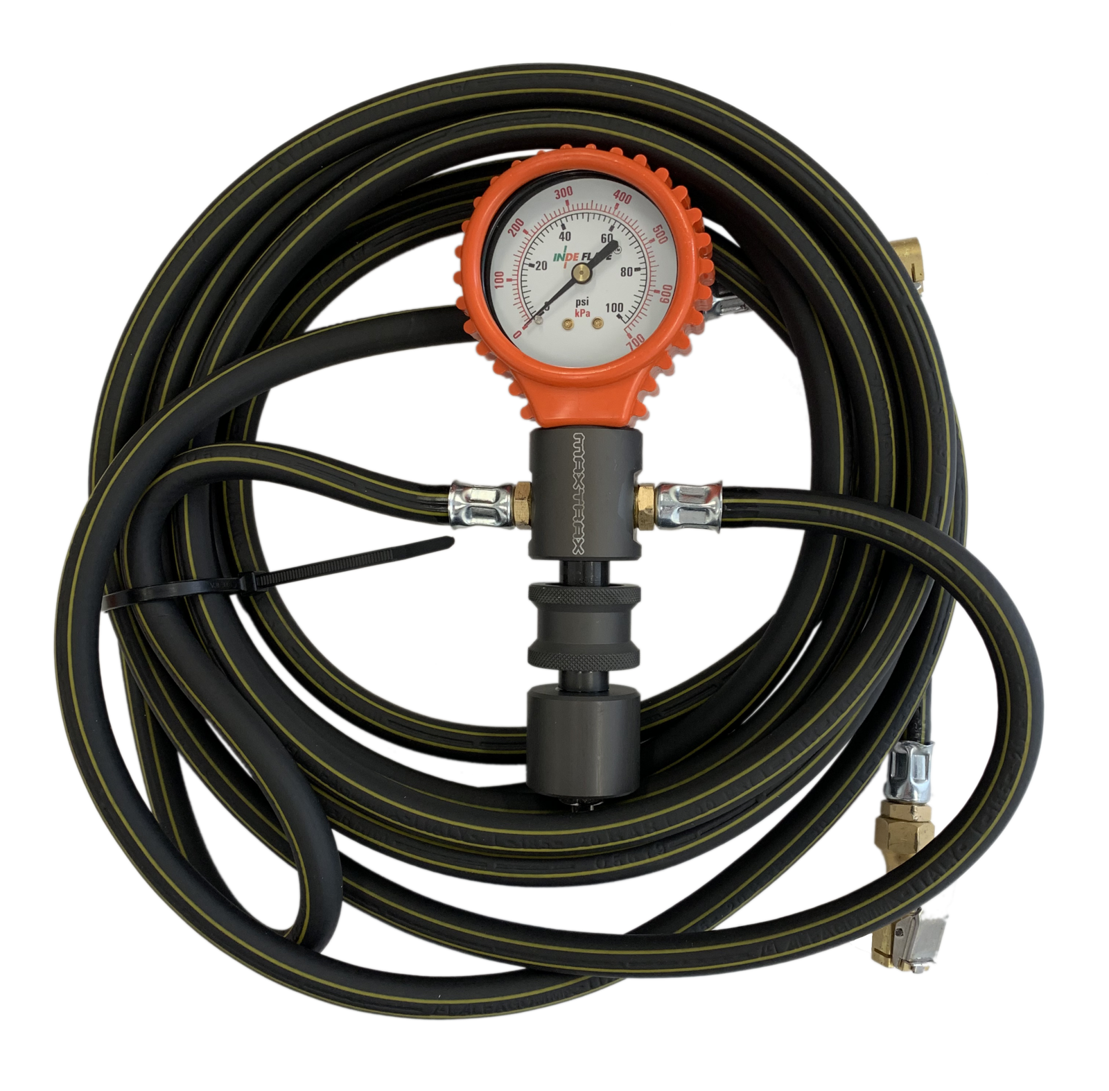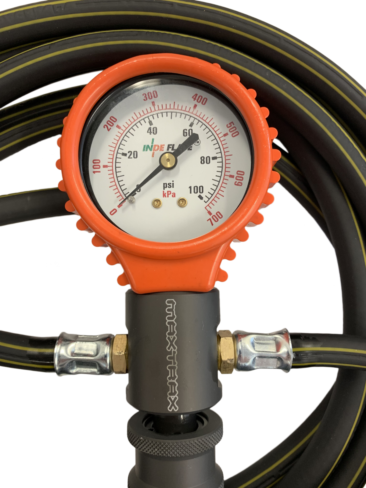 • The MAXTRAX INDEFLATE features a 700kpa (100psi) combination pressure gauge (manufactured by one of the world's leading suppliers of high-quality pressure and temperature measurement products) so that you can monitor your tyre pressures while inflating, deflating or equalising the tyre pressures.