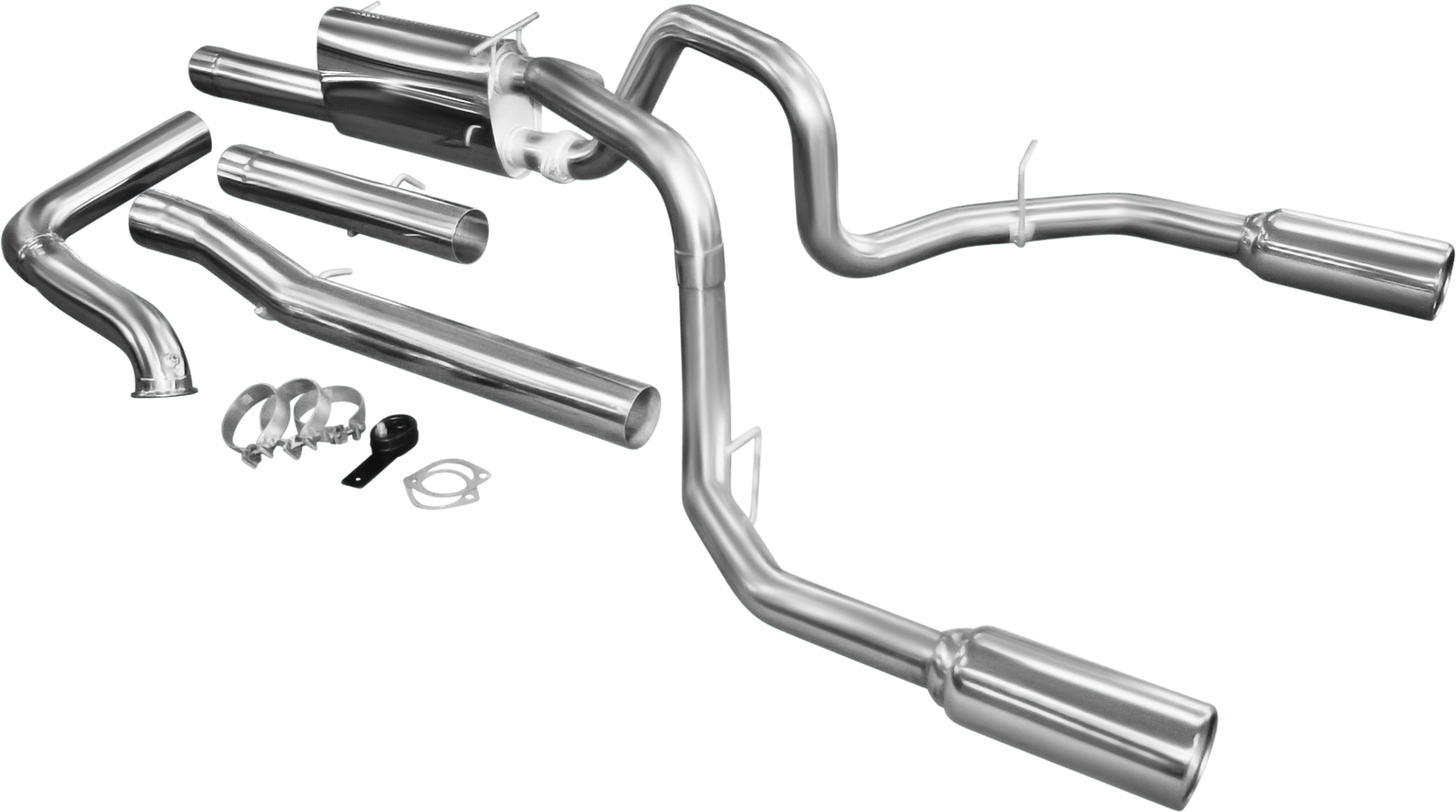 The high flow muffler that is included in the system helps manage the peak noise levels, without impacting performance, whilst the glass packing ensures the exhaust tone is throaty and deep. And whether you choose the left & right rear exits or side exits, you can be sure our 5″ chrome tips that come standard on this system will look the part!
