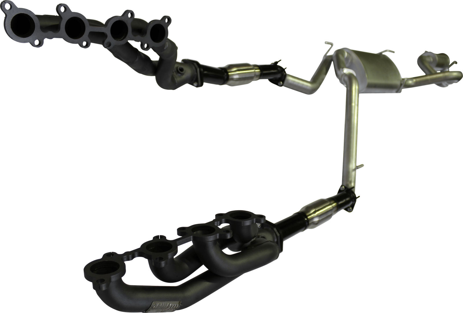 Our cat-back exhaust system is also designed to bolt to the standard catalytic converters, so you can get the great sounding V8 note without having to upgrade your headers and cats. Of course, many people do the cat-back upgrade first, and then later on upgrade the headers and cats – the complete kit doesn’t have to be installed all at one time.