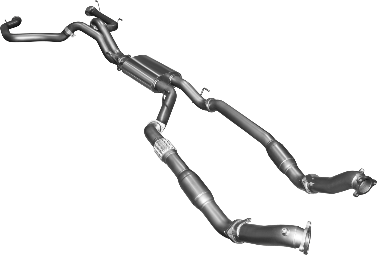The Extreme version of our exhaust for the 200 Series Landcruiser features twin 3” pipes off the turbos, through a set of high-flow catalytic converters, then into a high flow muffler, where it merges into a single 4” pipe to go over the diff. The system then goes back into a twin 3” exit (with 4? big bore tips) out the driver & passenger side.
