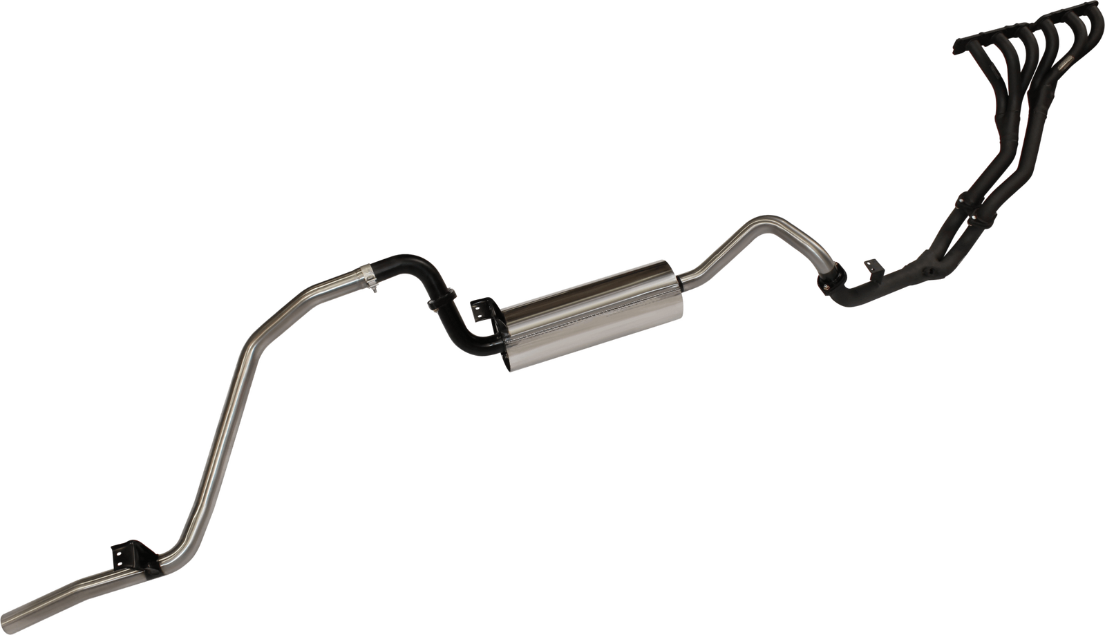 If you’re just looking for a better engine note, the “extractors back” portion of the exhaust can also be bolted up to the standard exhaust system, at the joint just after the driver’s door (leaving the standard manifold and engine pipe in place).