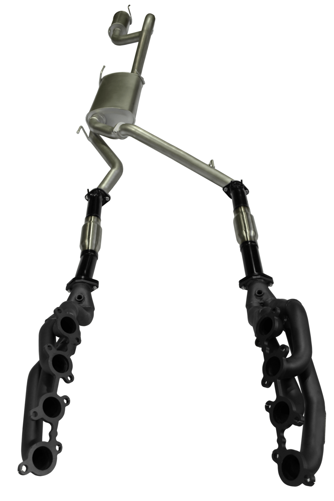 Our cat-back exhaust system is also designed to bolt to the standard catalytic converters, so you can get the great sounding V8 note without having to upgrade your headers and cats. Of course, many people do the cat-back upgrade first, and then later on upgrade the headers and cats – the complete kit doesn’t have to be installed all at one time.