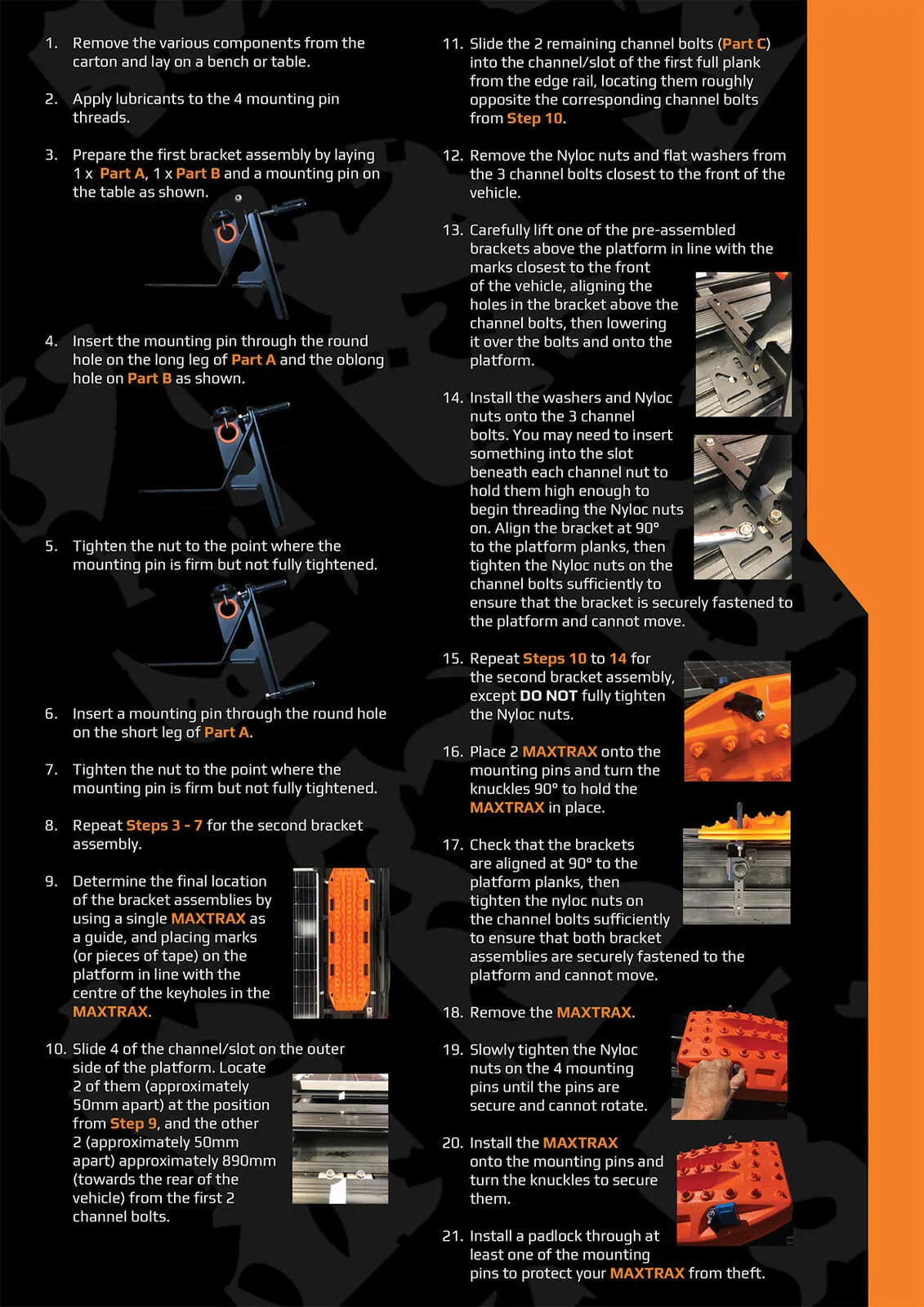 • 2 x Part A: powder-coated stainless-steel angle brackets featuring laser-cut MAXTRAX logos