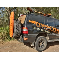 The MAXTRAX Rear Wheel Harness is designed to suit vehicles where there is easy access behind the spare wheel mount, typically with an aftermarket swing away carrier or rear bar such as Kaymar. * Designed for MAXTRAX MKII only. (MAXTRAX NOT INCLUDED).