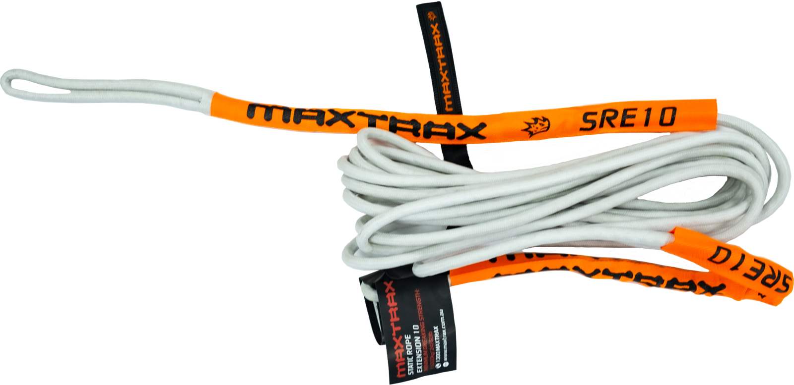 The MAXTRAX STATIC ROPE EXTENSION 10 is designed to be a static element during a vehicle recovery. The MAXTRAX STATIC ROPE EXTENSION 10 can be used as an extension strap for a tow recovery, joined together with MAXTRAX KINETC ROPE(S) or joined with a WINCH ROPE to extend the total length of ropes.