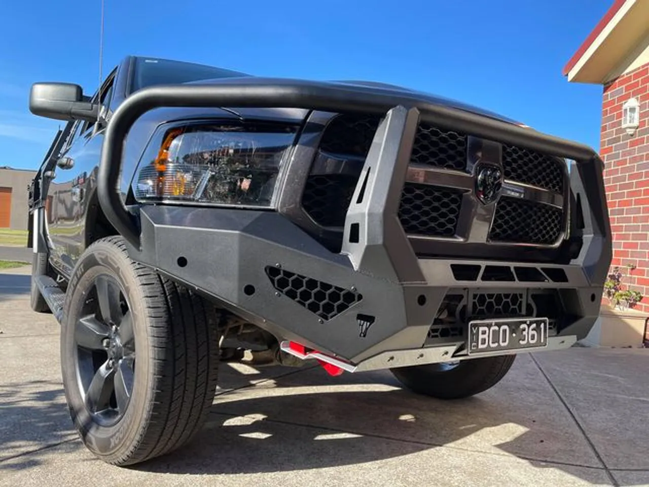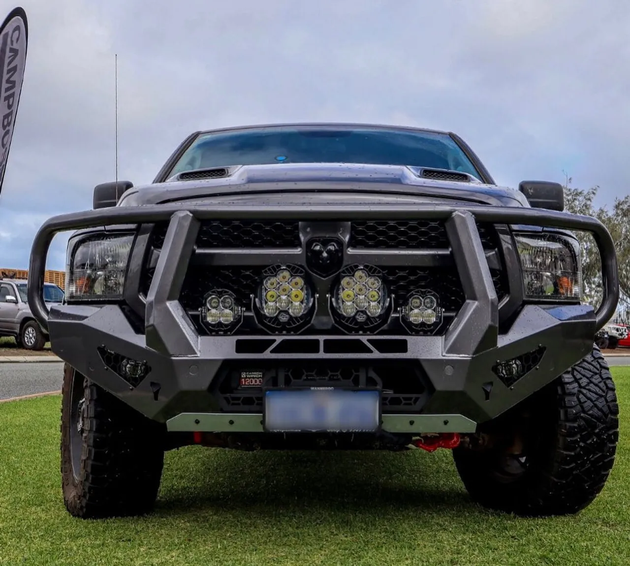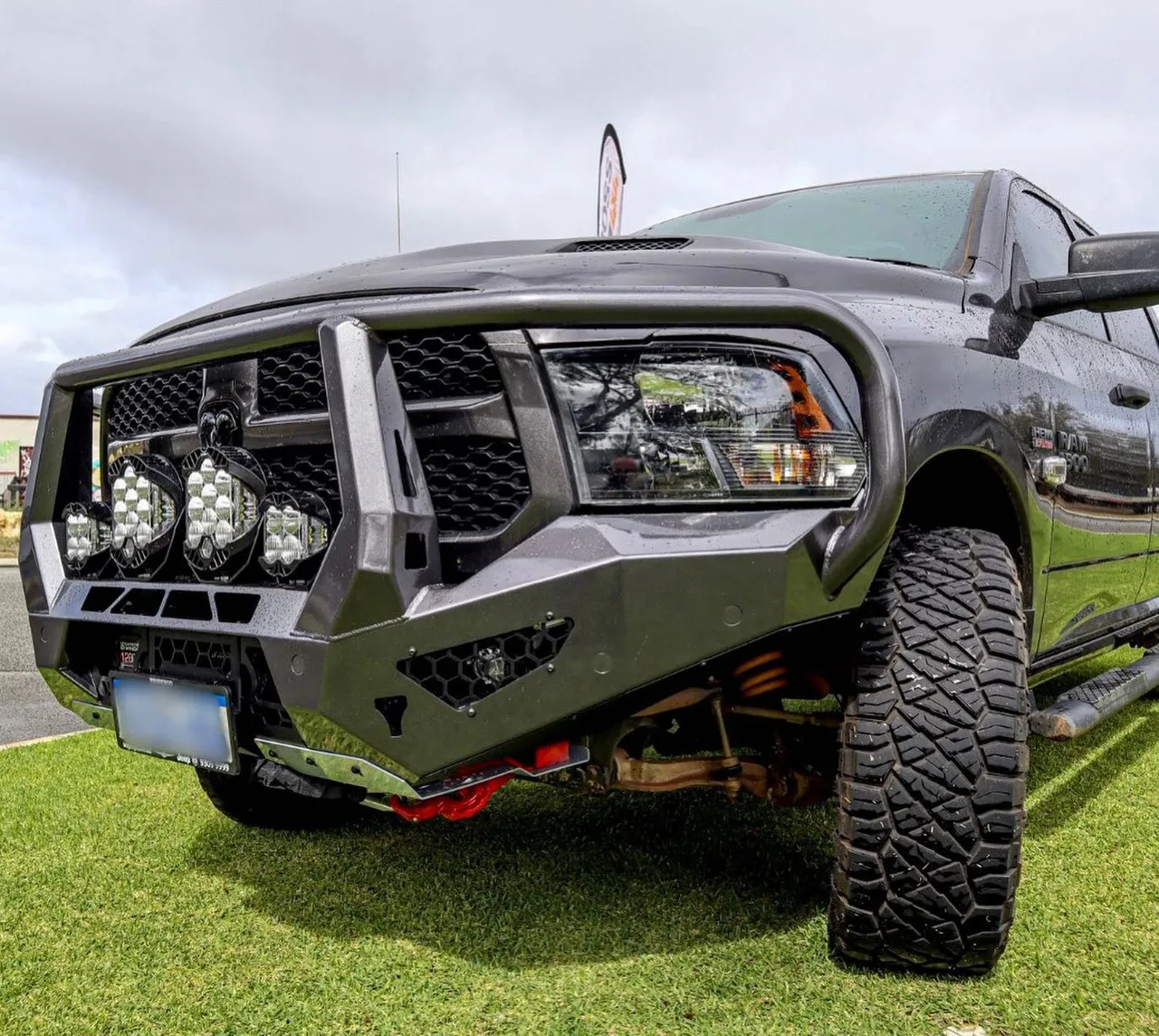 I sure do like the Ram 1500. It even eats other Utes for breakfast. How cool, right? Anyway, while they are a fantastic rig they're missing one thing. A kick arse front bar that not only gives your Ram that aggressive look but also protects vital components. The Offroad Animal Toro bar is a serious addition to your Ram designed to not only enhance it's already good looks but offer great protection, and application for mounting winches, lights and antenna. Don't drive around naked, get barred up with an Offroad Animal Toro bar.
