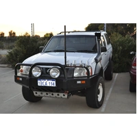 The Standard Commerical Bullbar from Outback Accessories features driving light and aerial mounts, recessed LED lights and suit most 9500lb winches for your Nissan Navara.