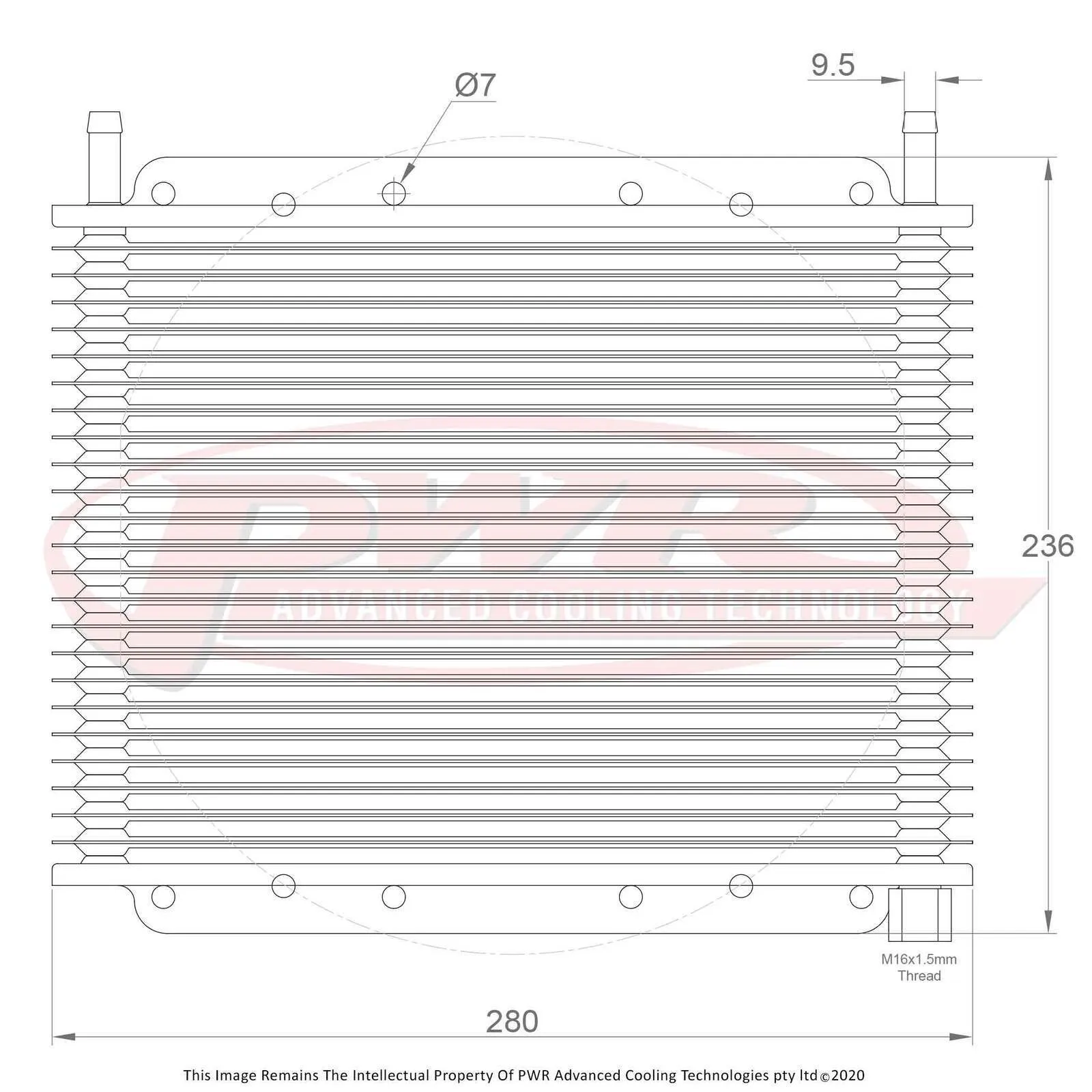 PWR’s patented plate and fin transmission oil coolers are made from 100% aluminium construction which allows the cooler to be made strong, lightweight and compact while offering high heat transfer and corrosion resistance. The plate design turbulates the oil flow and in conjunction with the unique louvered fin design provides highly efficient cooling with low-pressure drop. Manufactured with a 19mm core, these coolers are perfect for automatic transmissions, power steering and differential cooling for race and road applications. Offered with 5/16?, 3/8” or 1/2" push-on hose barbs or Dash -6 AN male threaded fittings. 5/16” and 3/8” can be ordered in kits containing hose, hose clamps and mounting hardware. Custom fittings for specific applications such as thermo switch bosses for thermo fan operation can be special ordered.