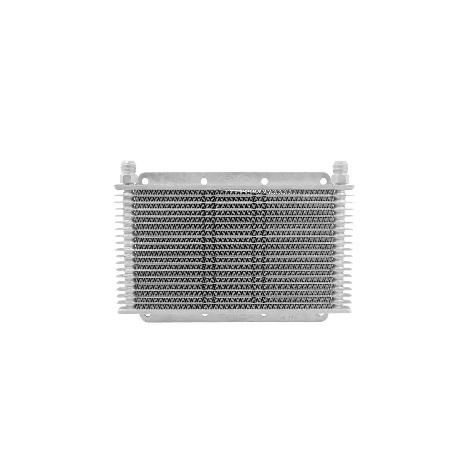 PWR’s patented plate and fin transmission oil coolers are made from 100% aluminium construction which allows the cooler to be made strong, lightweight and compact while offering high heat transfer and corrosion resistance. The plate design turbulates the oil flow and in conjunction with the unique louvered fin design provides highly efficient cooling with low-pressure drop. Manufactured with a 19mm core, these coolers are perfect for automatic transmissions, power steering and differential cooling for race and road applications. Offered with 5/16?, 3/8” or 1/2" push-on hose barbs or Dash -6 AN male threaded fittings. 5/16” and 3/8” can be ordered in kits containing hose, hose clamps and mounting hardware. Custom fittings for specific applications such as thermo switch bosses for thermo fan operation can be special ordered.