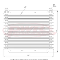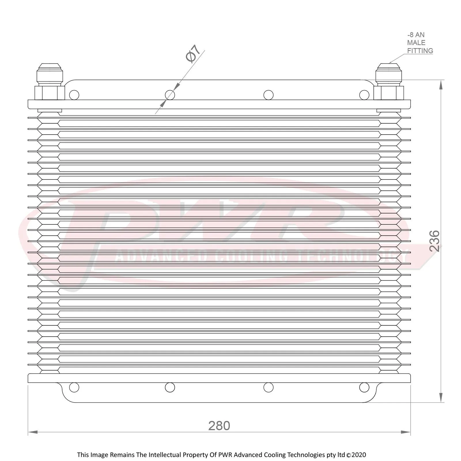 PWR’s patented plate and fin transmission oil coolers are made from 100% aluminium construction which allows the cooler to be made strong, lightweight and compact while offering high heat transfer and corrosion resistance. The plate design turbulates the oil flow and in conjunction with the unique louvered fin design provides highly efficient cooling with low-pressure drop. Manufactured with a 19mm core, these coolers are perfect for automatic transmissions, power steering and differential cooling for race and road applications. Offered with 5/16?, 3/8” or 1/2" push-on hose barbs or Dash -6 AN male threaded fittings. 5/16” and 3/8” can be ordered in kits containing hose, hose clamps and mounting hardware. Custom fittings for specific applications such as thermo switch bosses for thermo fan operation can be special ordered.