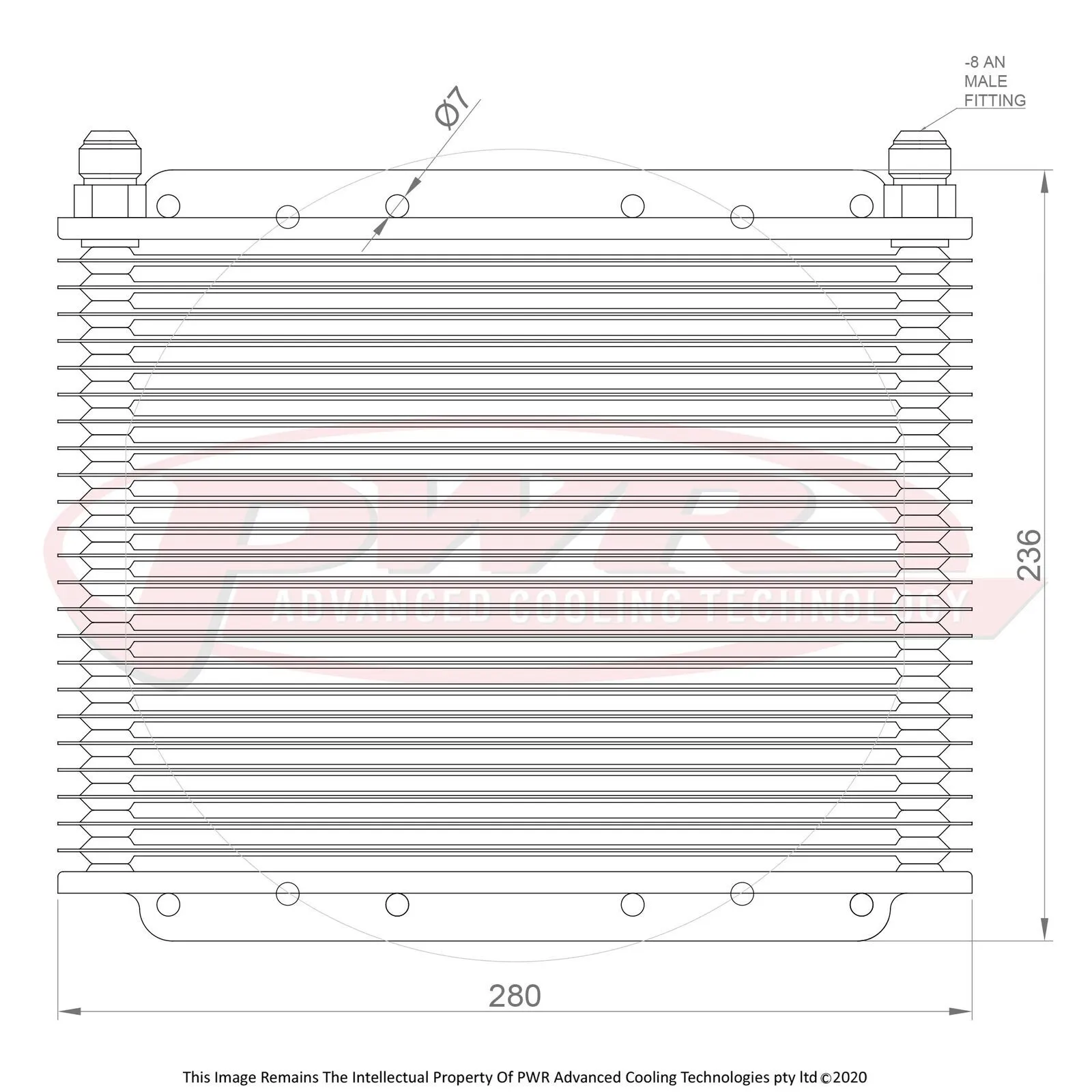 PWR’s patented plate and fin transmission oil coolers are made from 100% aluminium construction which allows the cooler to be made strong, lightweight and compact while offering high heat transfer and corrosion resistance. The plate design turbulates the oil flow and in conjunction with the unique louvered fin design provides highly efficient cooling with low-pressure drop. Manufactured with a 19mm core, these coolers are perfect for automatic transmissions, power steering and differential cooling for race and road applications. Offered with 5/16?, 3/8” or 1/2" push-on hose barbs or Dash -6 AN male threaded fittings. 5/16” and 3/8” can be ordered in kits containing hose, hose clamps and mounting hardware. Custom fittings for specific applications such as thermo switch bosses for thermo fan operation can be special ordered.