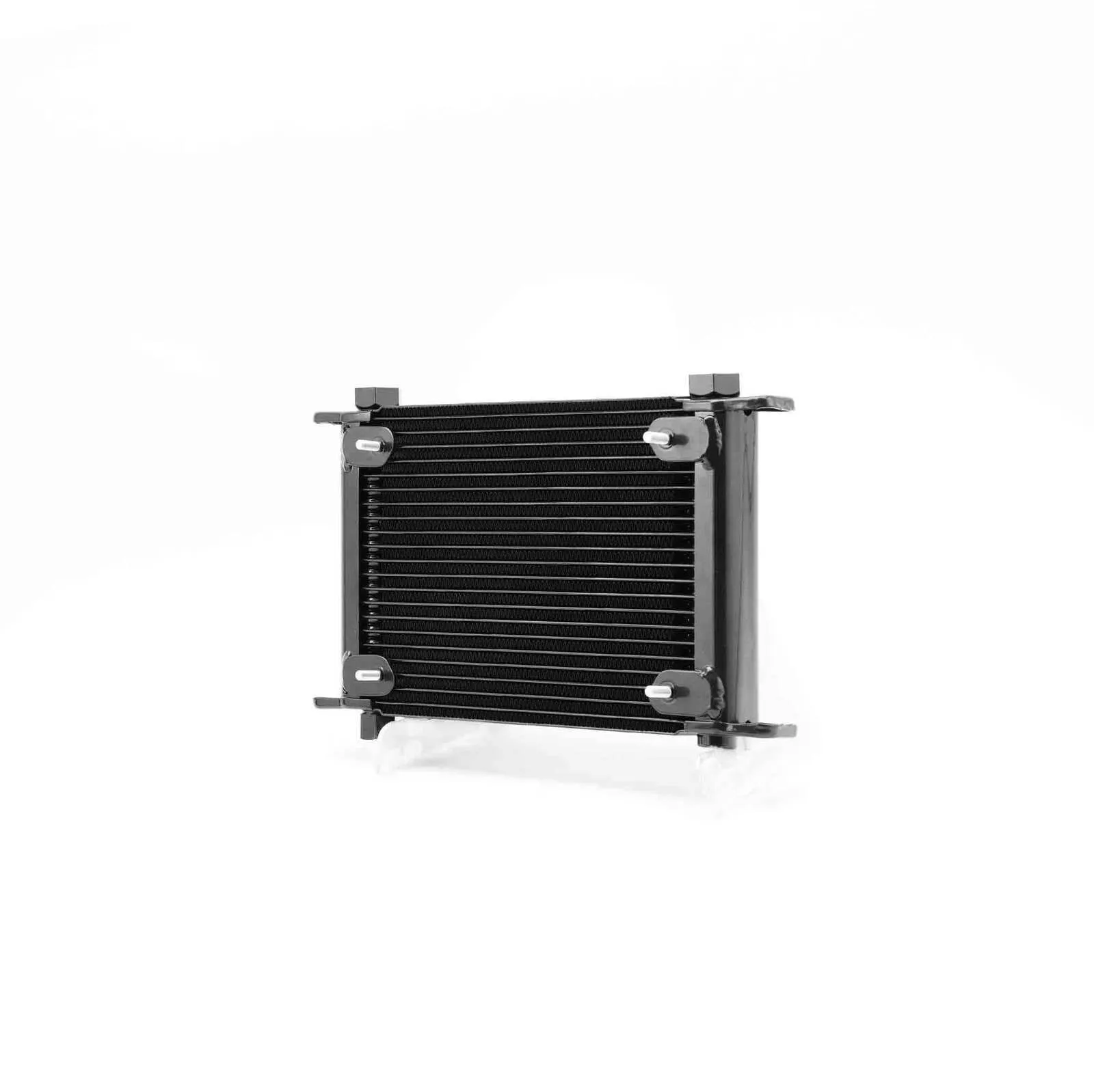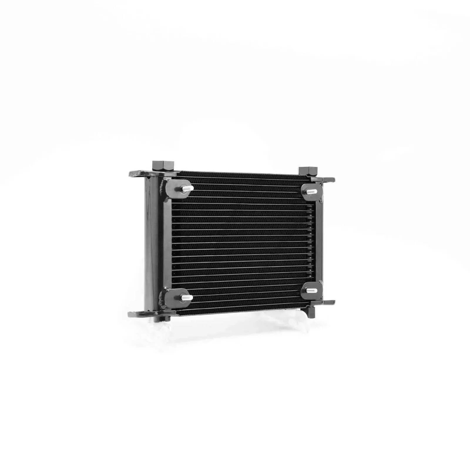 Modern engines run higher oil temperatures and rely on engine oil to assist the water system in cooling the engine. PWR’s patented plate and fin engine oil coolers are made from 100% aluminium construction which allows the cooler to be made strong, lightweight and compact while offering high heat transfer and powdercoated for corrosion resistance. The plate design turbulates the oil flow and in conjunction with the unique louvered fin design provides unequalled heat rejection while offering very low-pressure drop. Manufactured with a 37mm core, these coolers are perfect for engine oil cooling, heavy duty automatic transmission cooling, power steering and differential cooling for race and road applications. All coolers come standard with Dash -10 AN & Dash -12 AN male adapters with Dash -6 AN & Dash -8 AN being alternative options. Custom versions can be special ordered with thermo fan mounts with or without thermo switch bosses.