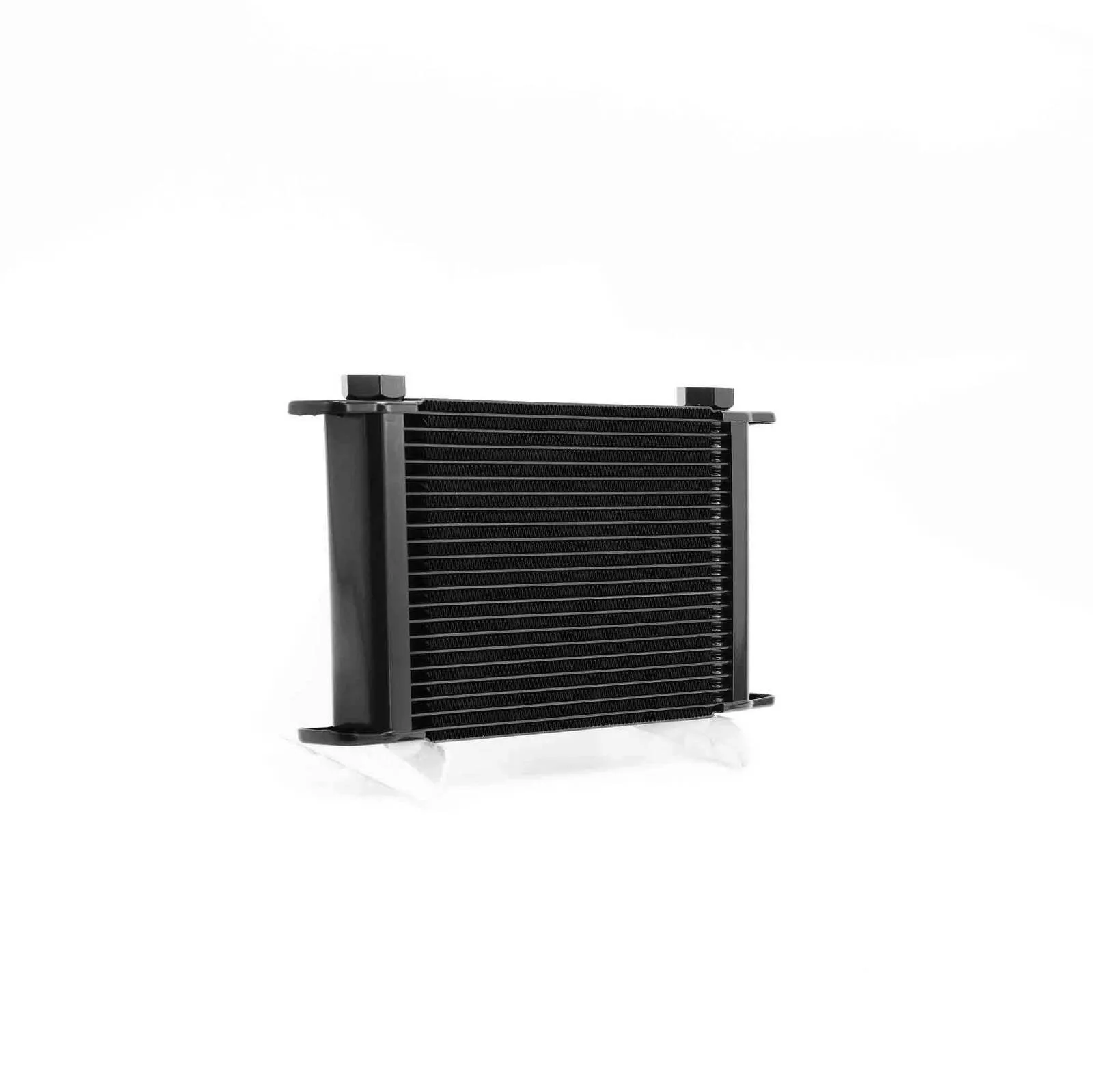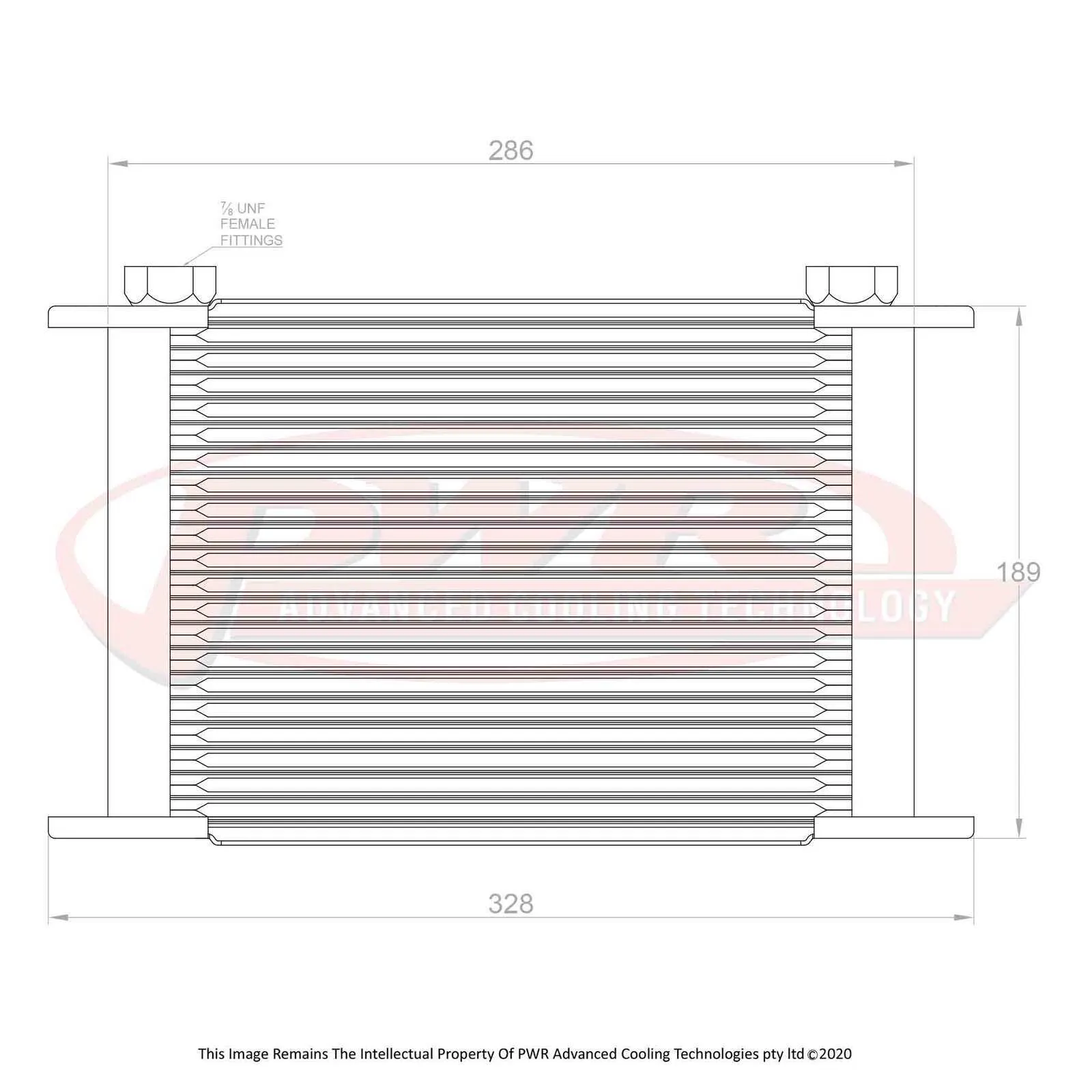 Modern engines run higher oil temperatures and rely on engine oil to assist the water system in cooling the engine. PWR’s patented plate and fin engine oil coolers are made from 100% aluminium construction which allows the cooler to be made strong, lightweight and compact while offering high heat transfer and powdercoated for corrosion resistance. The plate design turbulates the oil flow and in conjunction with the unique louvered fin design provides unequalled heat rejection while offering very low-pressure drop. Manufactured with a 37mm core, these coolers are perfect for engine oil cooling, heavy duty automatic transmission cooling, power steering and differential cooling for race and road applications. All coolers come standard with Dash -10 AN & Dash -12 AN male adapters with Dash -6 AN & Dash -8 AN being alternative options. Custom versions can be special ordered with thermo fan mounts with or without thermo switch bosses.