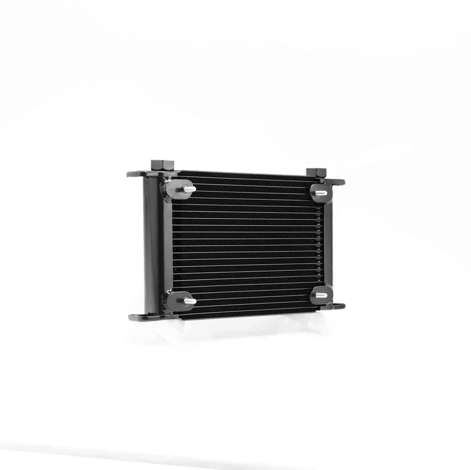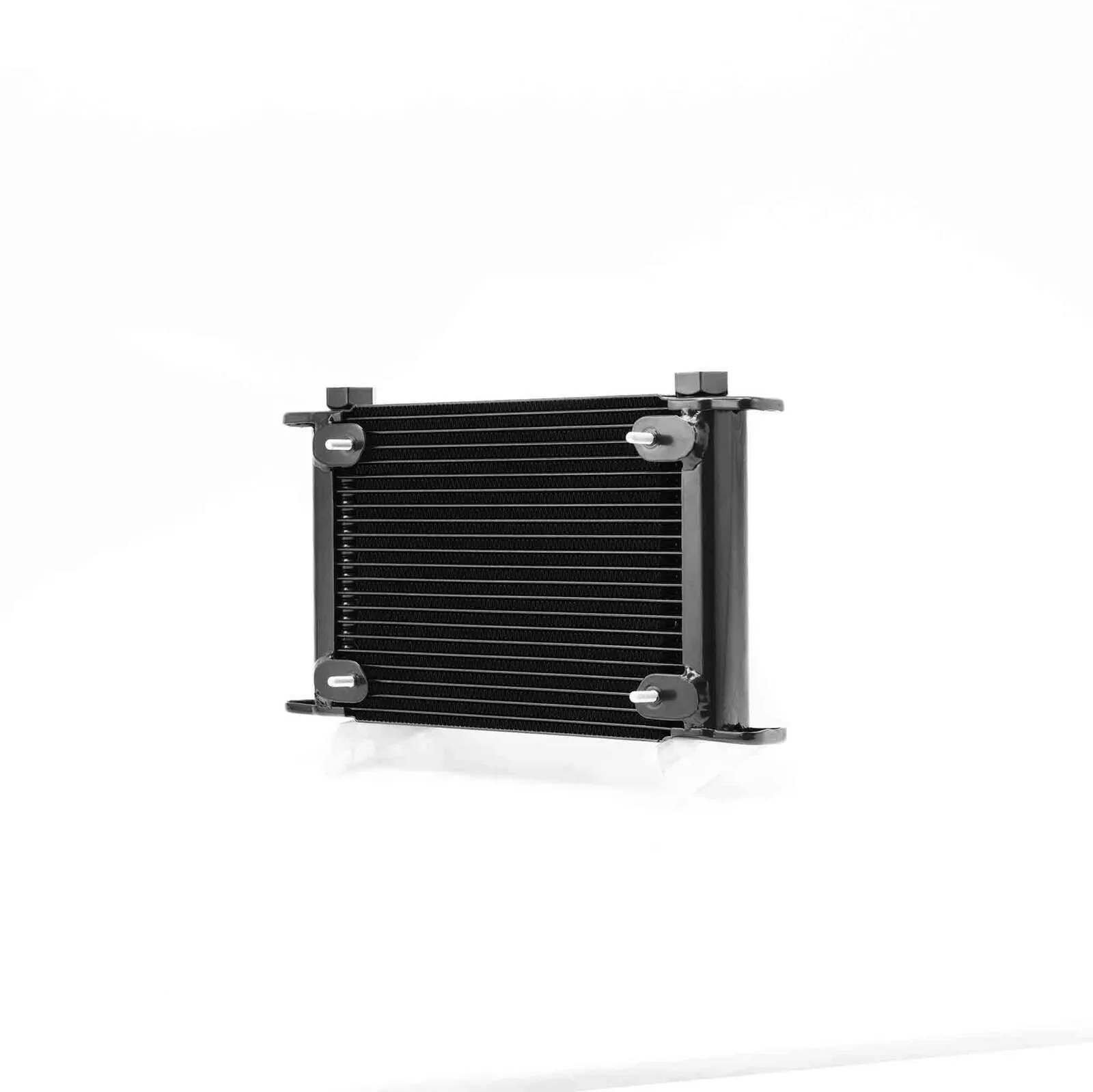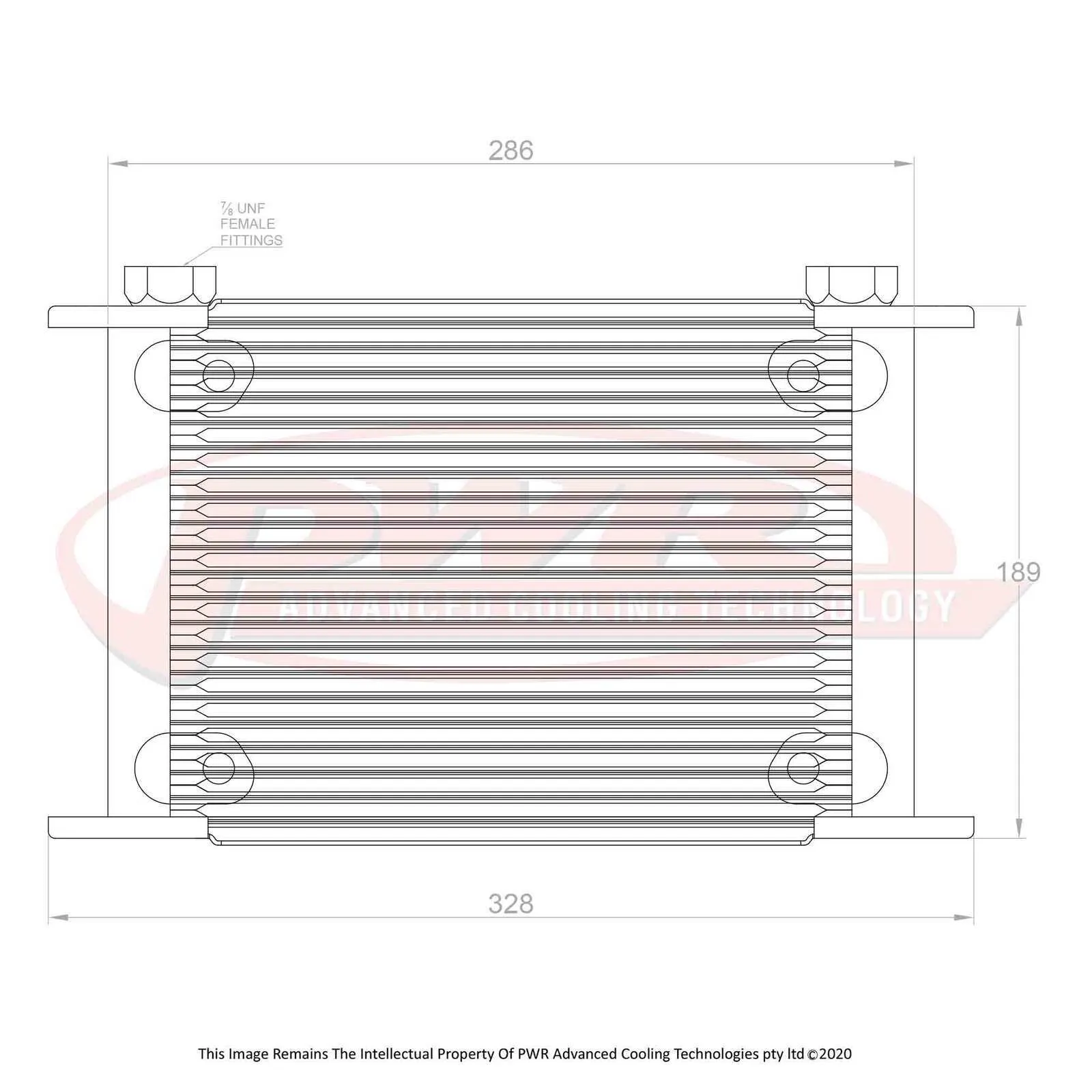 Modern engines run higher oil temperatures and rely on engine oil to assist the water system in cooling the engine. PWR’s patented plate and fin engine oil coolers are made from 100% aluminium construction which allows the cooler to be made strong, lightweight and compact while offering high heat transfer and powdercoated for corrosion resistance. The plate design turbulates the oil flow and in conjunction with the unique louvered fin design provides unequalled heat rejection while offering very low-pressure drop. Manufactured with a 37mm core, these coolers are perfect for engine oil cooling, heavy duty automatic transmission cooling, power steering and differential cooling for race and road applications. All coolers come standard with Dash -10 AN & Dash -12 AN male adapters with Dash -6 AN & Dash -8 AN being alternative options. Custom versions can be special ordered with thermo fan mounts with or without thermo switch bosses.