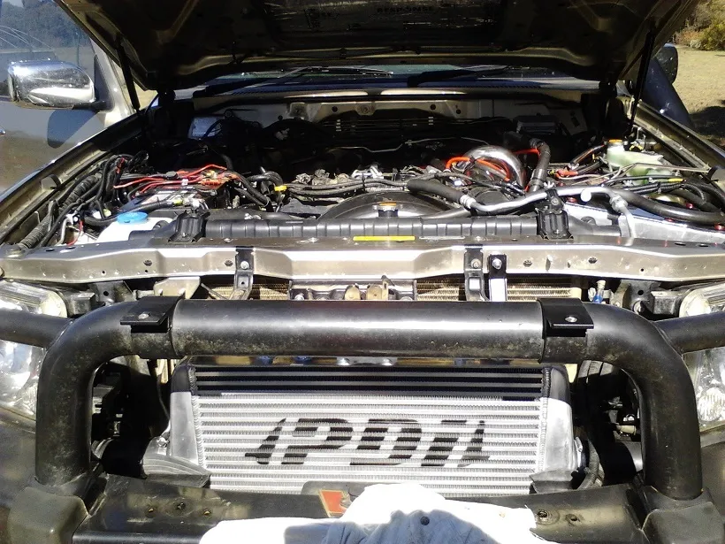 Our PDI Nissan GU ZD30 CRD Front Mount intercooler Kit was designed to be a bolt in option for GU ZD30 owners chasing better cooling to reduce EGT or those running larger turbos for better performance. Large core with 2 1/2" stainless pipework to and from the intercooler.