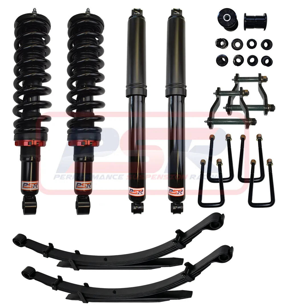 This kit contains PSR TTG front struts all pre-assembled with Kings Coil springs and HD strut tops, leaf springs, U-bolts, new leaf bushes and PSR TTG rear shocks.