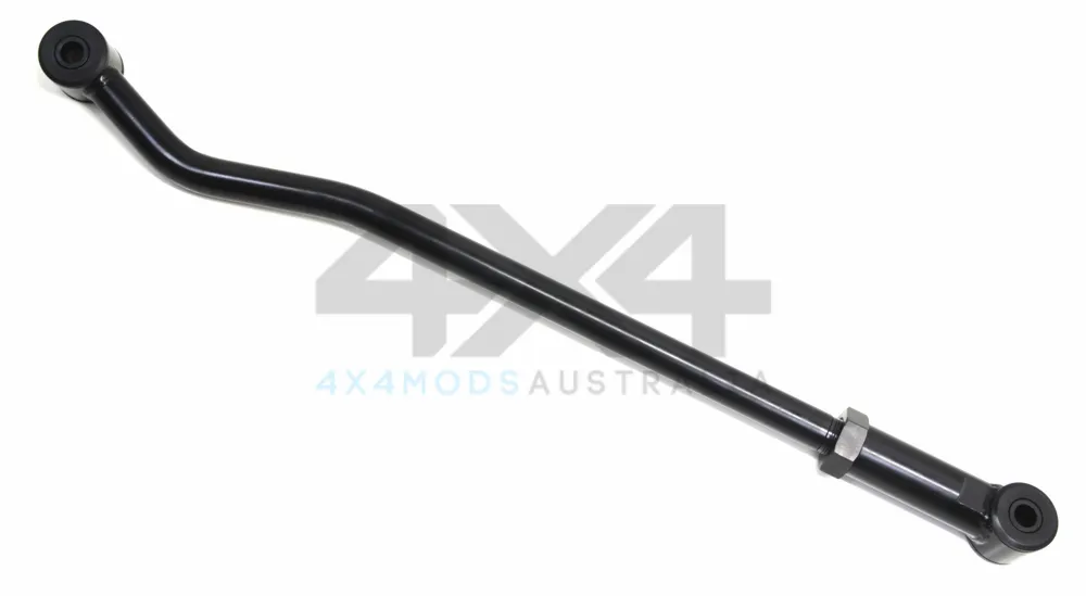 PSR's Toyota LandCruiser 80 - 105 front panhard bar is designed to be the strongest on the market. Made from solid oversized 30mm chromoly bar in an off car adjustment configuration it features double locking nuts, heavy duty welds and a fine thread which means our panhard bars are super tough. Tested lengths to allow driveline realignment and also provide enough adjustment for your wheels to clear chassis and other important items around your tyres. Smart design means all bars take factory size bushes so when you need to change them out you can source replacement bushes anywhere in Australia. Finished in Black to blend to the chassis and for a long service life.