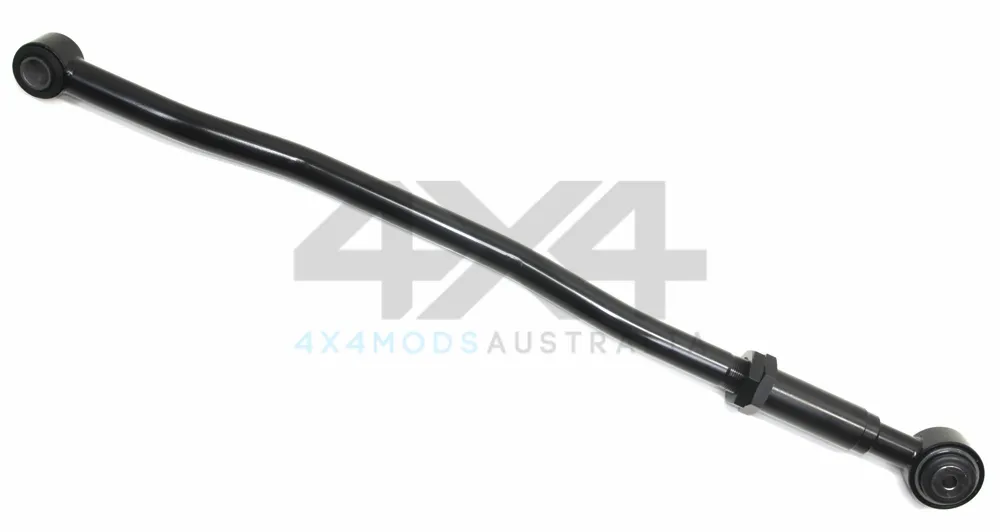PSR's Nissan Patrol GU Series 2 onwards rear panhard bar is designed to be the strongest on the market. Made from solid oversized 35mm chromoly bar in an off car adjustment configuration it features double locking nuts, heavy duty welds and a fine thread which means our panhard bars are super tough. Tested lengths to allow driveline realignment and also provide enough adjustment for your wheels to clear chassis and other important items around your tyres. Smart design means all bars take factory sizes bushes so when you need to change them out you can source replacement bushes anywhere in Australia. This model Patrol comes with new spherical bushes on the chassis end and new bushes at the diff end. Finished in Black to blend to the chassis and for a on service life. Check cab chassis fitment for Series 2 onwards.