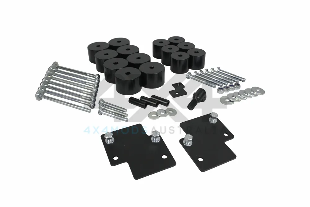 PSR offers a complete bolt-in 2" Body Lift Kit for a single or extra cab variation with a tray back. Kit is supplied with high tensile bolts and blocks to the size or larger than OE body mounts to be compliant. Kit comes with a bolt in steering column extension. Also supplied is a reo bar lift bracket to allow the factory reo to be retained if plastic bumper is still fitted to vehicle. Spacers are supplied to couple the factory splash guard if retained. An auto line bracket is supplied for auto models so cooler line will not rub on the sway bar. Kit is complete with no additional items required to Body Lift your Holden RG Colorado 2". Suits RG1 models without electronic steering. Extra / Single Cab (WITH TRAY). Can be supplied with 1" tray blocks on request. Blocks are machined from 6061 T6 Alloy block and anodized black.
