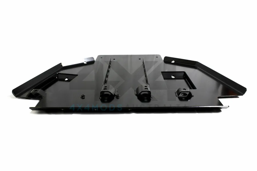 5mm steel, mounted to rear of front guard and runs down side of chassis for support. Pockets for DPF to allow maximum ground clearance. Removal of factory tube DPF protectors required, massively stronger than what is removed!