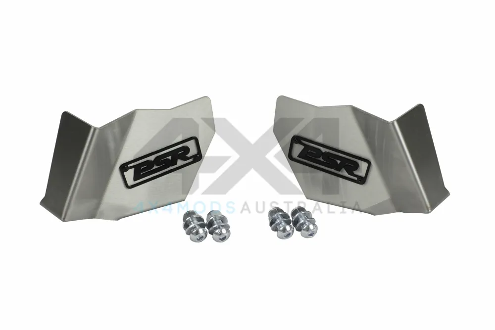 PSR's Toyota Landcruiser 70 Series Leaf Spring Glide Plate Shock Guard. Manufactured from 3mm stainless and TIG welded this item will protect your shock absorbers from the impact from most rock and other underbody damaging items. The Glide plate system will work with any variation of shock and leaf spring, the shock guard will not work with sway bars. Will only work with PSR Toyota Landcruiser 70 Series Leaf Spring Glide Plate.