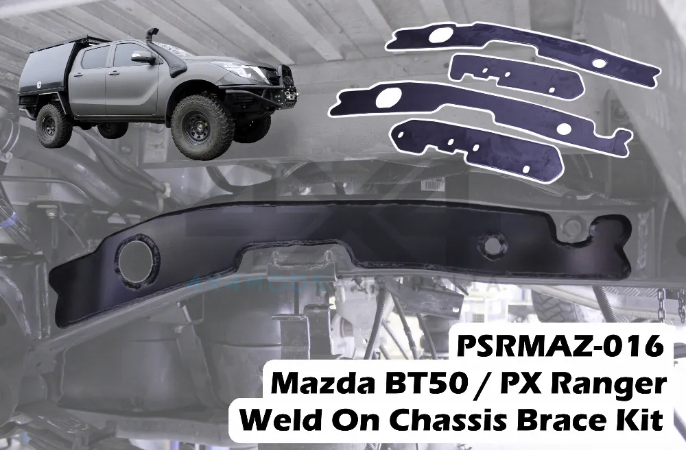 PSR's Weld on Chassis Brace Kit is supplied as a set of 4 individual pieces cut from 4mm 350mpa sheet and allows you to strengthen your chassis in a high load area common for fatigue and failure. Kit comes with a full installation guide. It is recommended to consult with a local engineer before commencing any modifications to your vehicle's chassis.