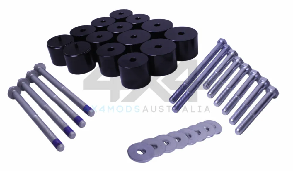 PSR's Mazda BT-50 & PX Ranger MK1, MK2 and MK3 (WITH TUB) 1" Body Lift Kit as a complete bolt-in solution. Kit is supplied with high tensile bolts in other positions and blocks of specific size to suit size of OE body mount.