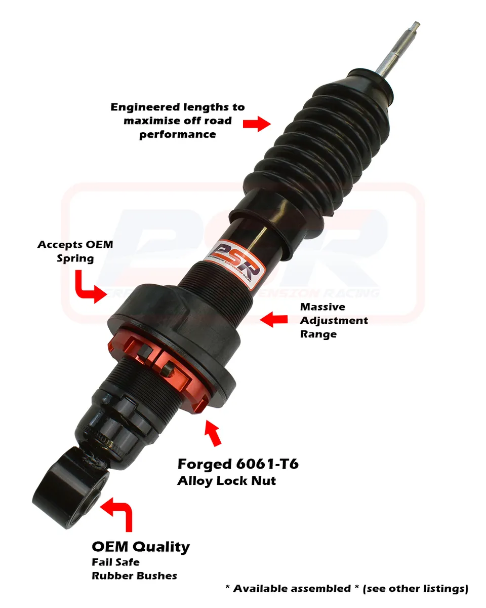 Most companies only evaluate things like shock valving and length BUT only redesign to suit their own construction style. At PSR we evaluate critical elements of the shock that make it worthy of fitment to your vehicle such as length and weaknesses within the suspension.