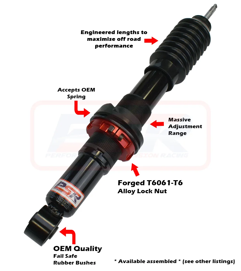 Most companies only evaluate things like shock valving and length BUT only redesign to suit their own construction style. At PSR we evaluate critical elements of the shock that make it worthy of fitment to your vehicle such as length and weaknesses within the suspension.