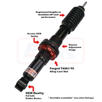 Problem areas are commonly the lower peg on strut units. Failure of this area when suspension is compressed beyond its normal range of travel can happen and having a unit tough enough to take that force is imperative, a tapered oversized peg is standard to combat this issue. This is most common to occur when on the beach or heavily whooped out roads.
