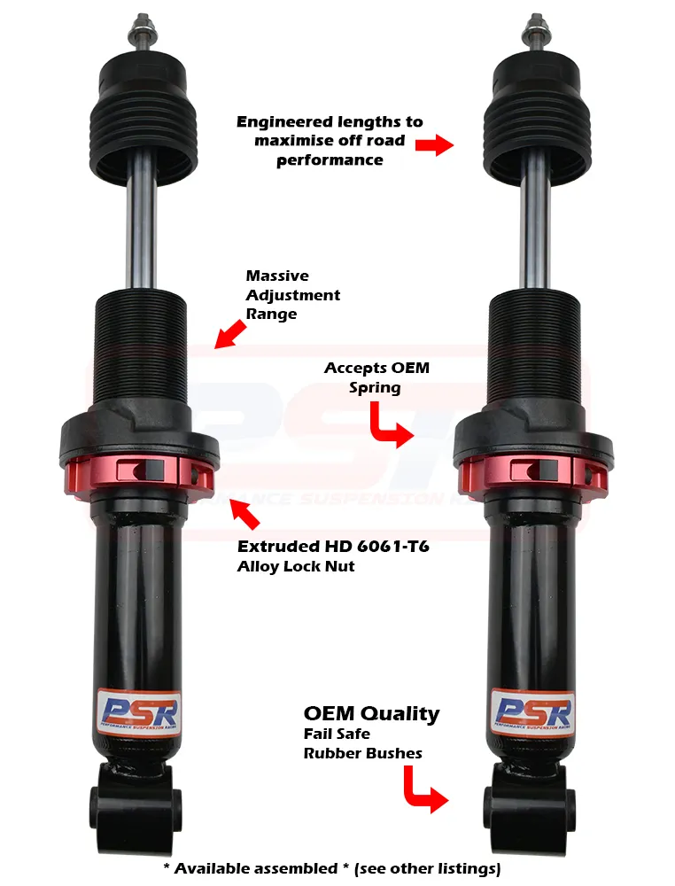 Most companies only evaluate things like shock valving and length BUT only redesign to suit their own construction style. At PSR we evaluate critical elements of the shock that make it worthy of fitment to your vehicle such as length and weaknesses within the suspension.