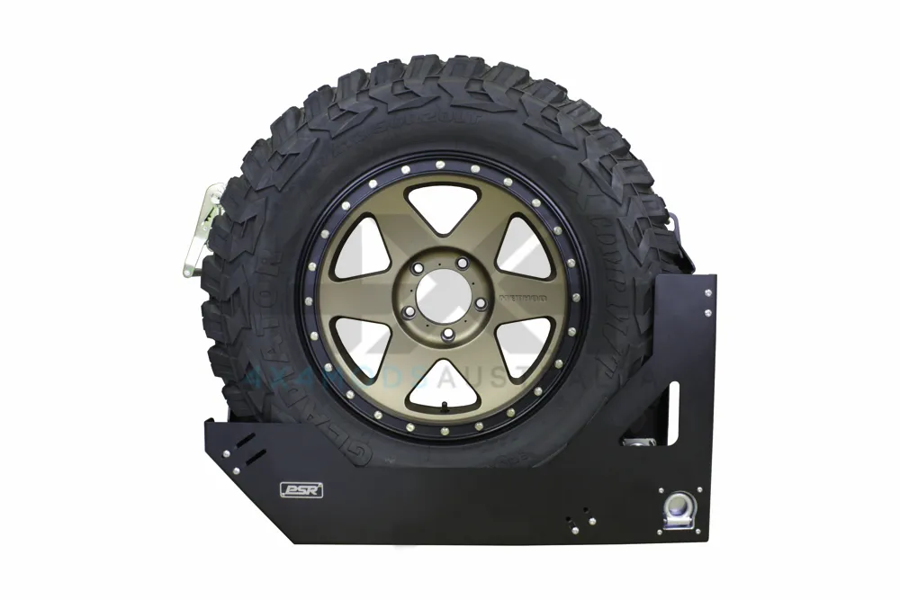 PSR's Universal Vertical Spare Tyre Mount comes with two variations to suit tyres from 28-32" and 33-37".