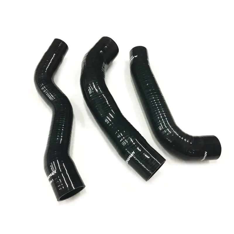 Featuring a high temperature, oil resistant silicone hose with wire reinforcement. Silicone hoses allow for engine flex and vibration to be dampened - hard metal pipes can cause plastic end tanks to crack or break in OEM applications.