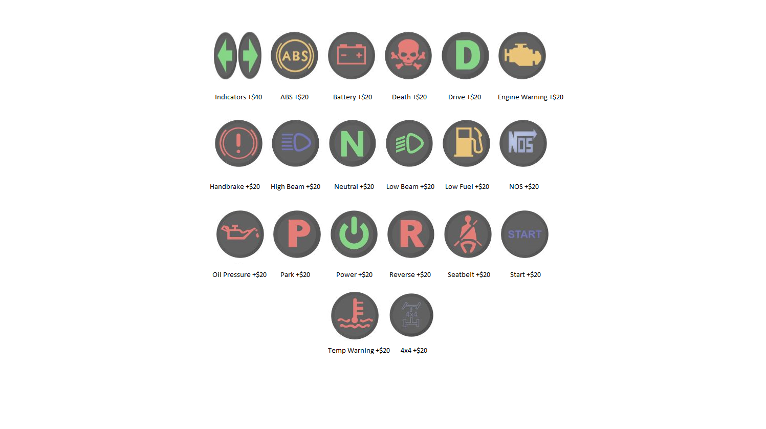We also offer top end Billet Aluminium indicator lights for your dash. The lights are 12mm 12v LEDs with a matte black finish.