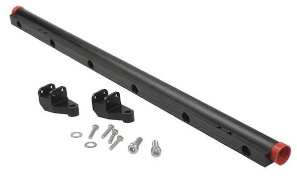 Mounting hardware as pictured. Rail has AN-8 O-Ring Ports on Ends, and AN-6 O-Ring Port in Centre. Suits Full Length injectors with 14mm Top O-rings.
