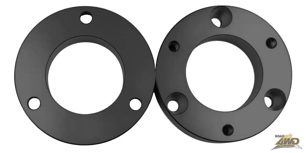 Roadsafe Coil Strut Spacer kits include a pair of coil strut spacers plus fitting hardware (studs, nuts etc.) The Strut Spacers are designed for vehicles running standard coil springs in the front. If your vehicle is fitted with a winch, bull bar etc., which is weighing the front end down, then a strut/spring upgrade is required.