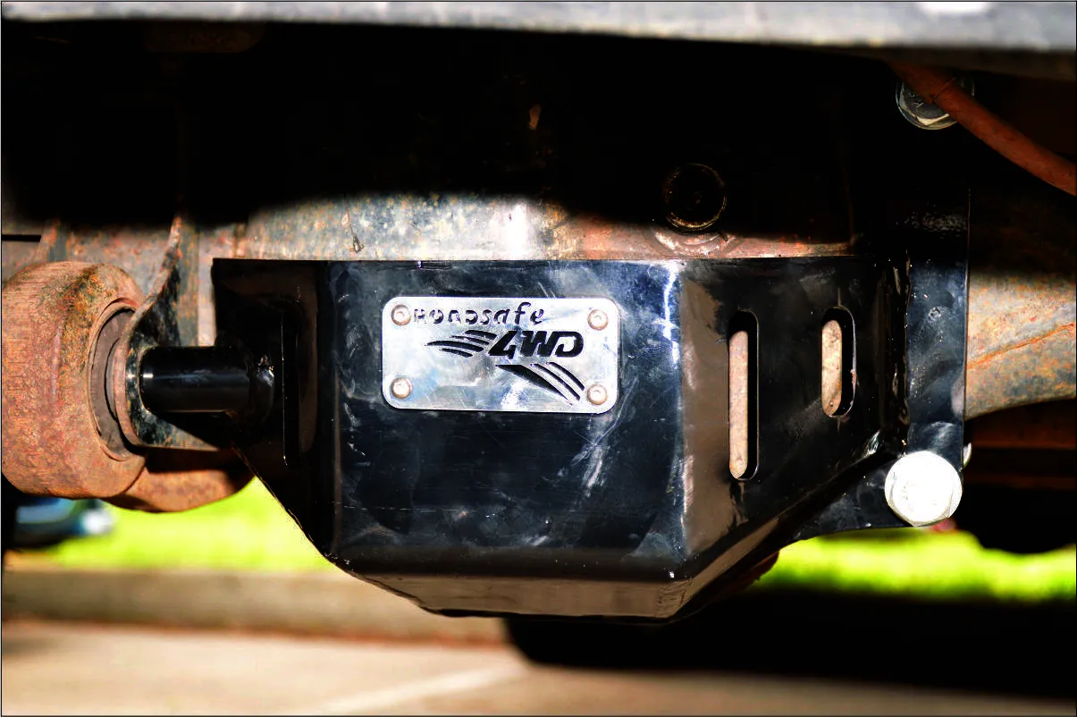 • Manufactured from a combination of 6 & 8mm thick plate, the Roadsafe 4WD Patrol Front Diff Guards provide that extra protection you need for your front diff when off roading. Taking just 10 minutes to fit, the Diff Guard simply bolts on to the diff housing using hardware supplied. We got sick of the other Diff Guards rolling backwards after a knock, so this one is designed to bolt through the radius arm mount, and clamp the diff housing, so there are strong mounting points keeping the guard in place. Additionally, the shape has been refined to run as close as possible to the original diff housing, to allow clearance for aftermarket panhards.